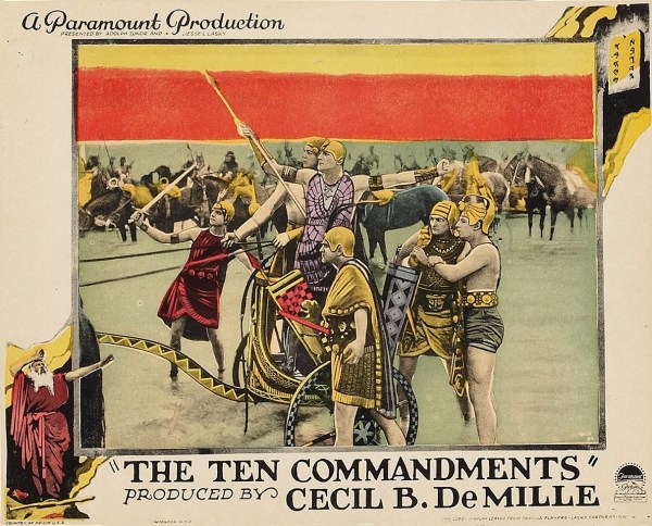 Sinopsis: El film narra la historia de Moisés, desde su enfrentamiento con Ramsés y la aparición de las plagas de Egipto, hasta su éxodo liderando al pueblo judío hacia la Tierra Prometida, así como la revelación de los Diez Mandamientos en el monte Sinaí. La película contó con un enorme presupuesto para la época, y cuenta con una segunda parte que analiza la influencia práctica de los Diez Mandamientos en la vida moderna, en una historia ambientada en la contemporánea San Francisco.